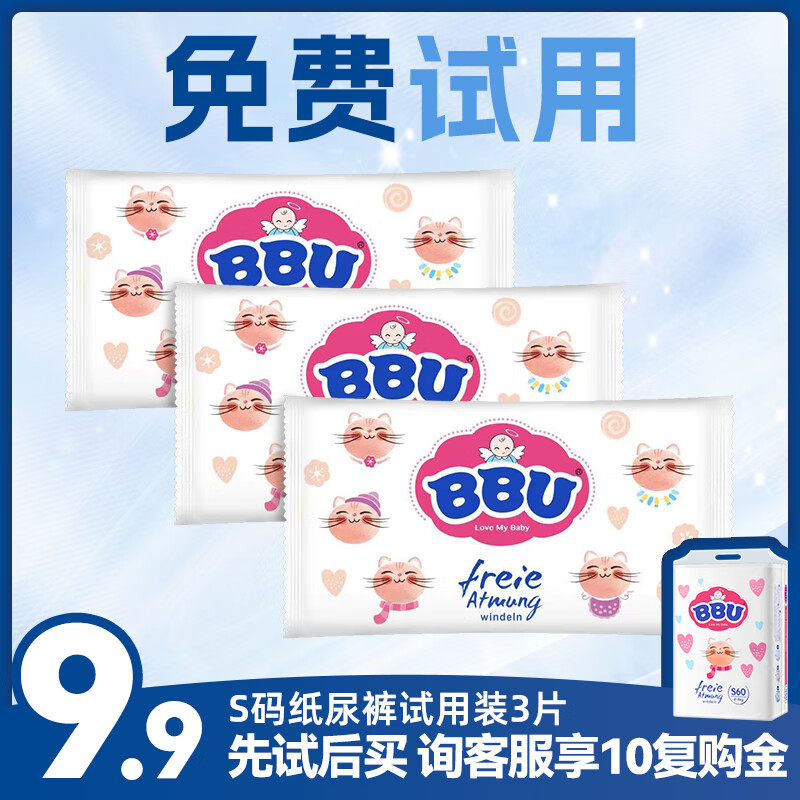 BBU自由呼吸纸尿裤拉拉裤试用装新生婴儿超薄透气尿不湿干爽 纸尿裤S码3片(4~8Kg)