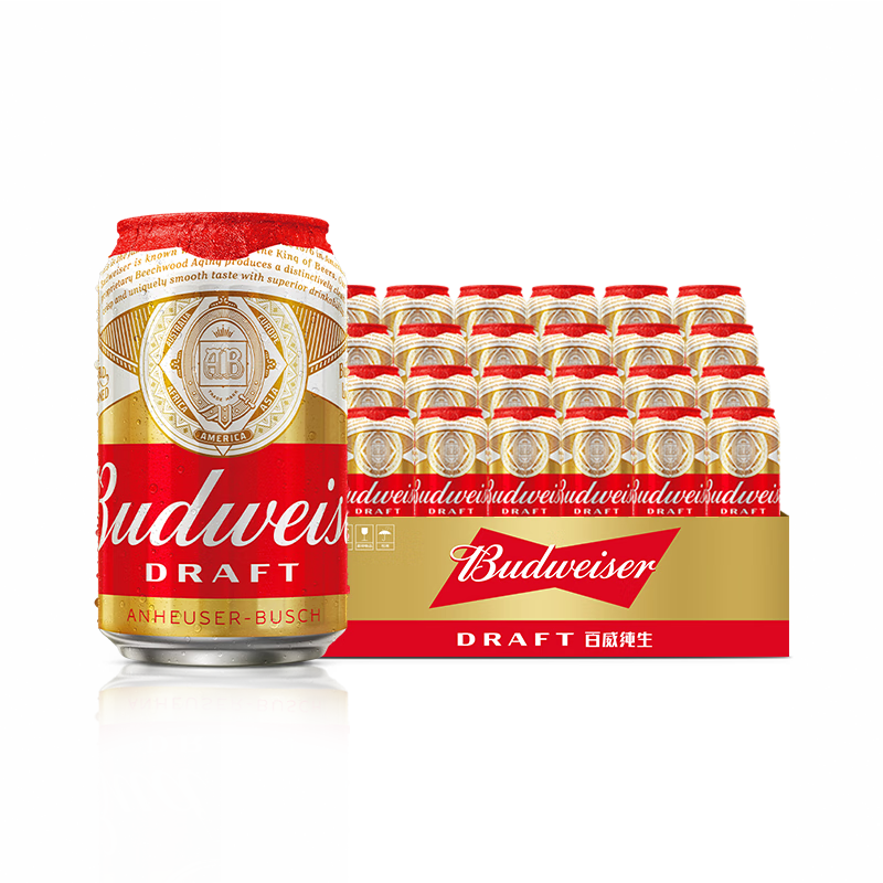 百威啤酒经典纯生330ml*24听整箱装新旧包装随机京东自营