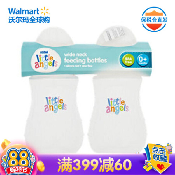 ASDA(艾斯达)英国进口 Little Angels小天使 硅胶奶嘴 宽口颈塑料喂养奶瓶 2个装
