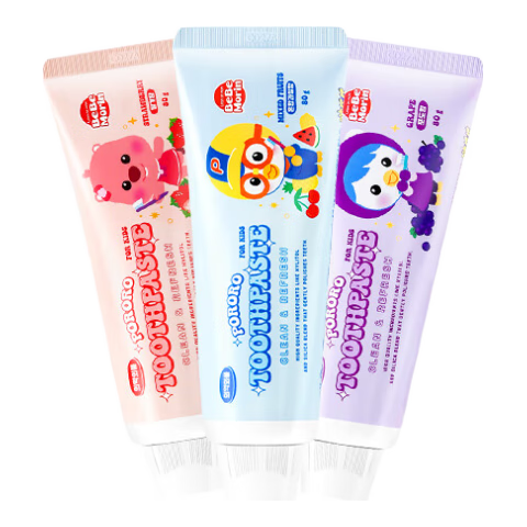 啵乐乐(Pororo)儿童牙膏3-6-12岁低氟防蛀防龋齿宝宝护牙套装(草莓 蜜桃)160g