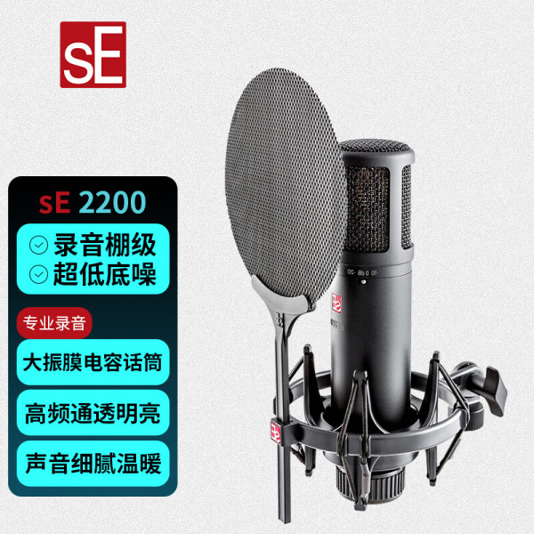 SE2200大震膜电容麦克风直播K歌录音棚级话筒配音录音有声书设备电脑声卡麦克风全套装 sE2200标配+话筒线+桌面支架