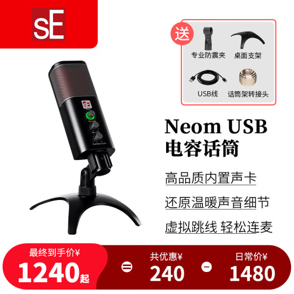 sE Neom USB电容麦克风话筒游戏K歌直播网课配音录音专业有声书内置声卡 sE Neom标配