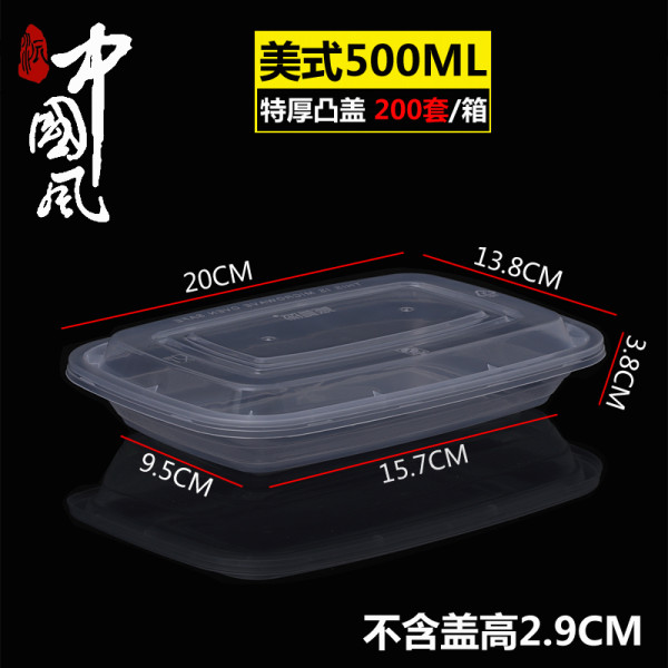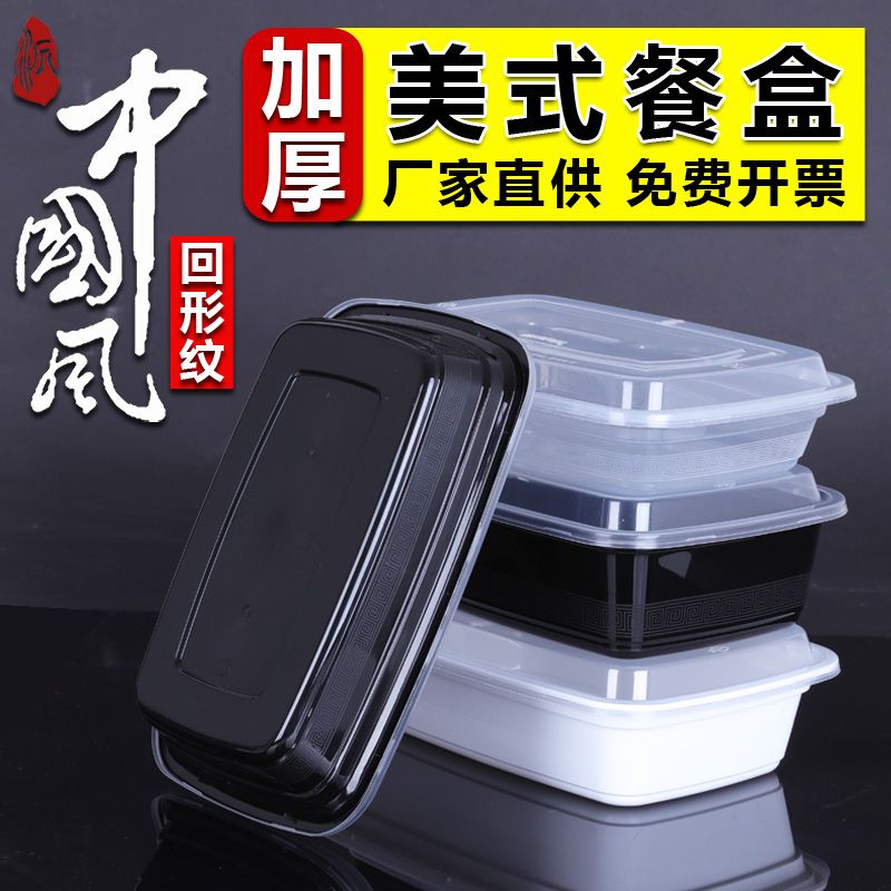 贩美丽美式长方形一次性打包盒加厚快餐盒饭盒外卖便当盒凸盖餐盒