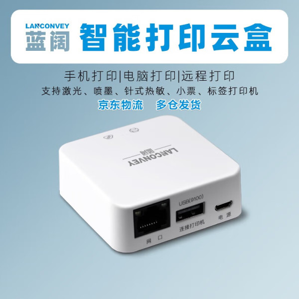 LANCONVEY 蓝阔 打印服务器支持电脑共享手机远程云打印小白盒子usb打印机