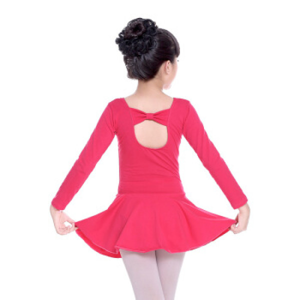 茜宸 XICHEN 儿童舞蹈服 可定制练功服女童棉连体裙套装长袖芭蕾舞裙连体服蝴蝶结考级服玫红蝴蝶结 170码