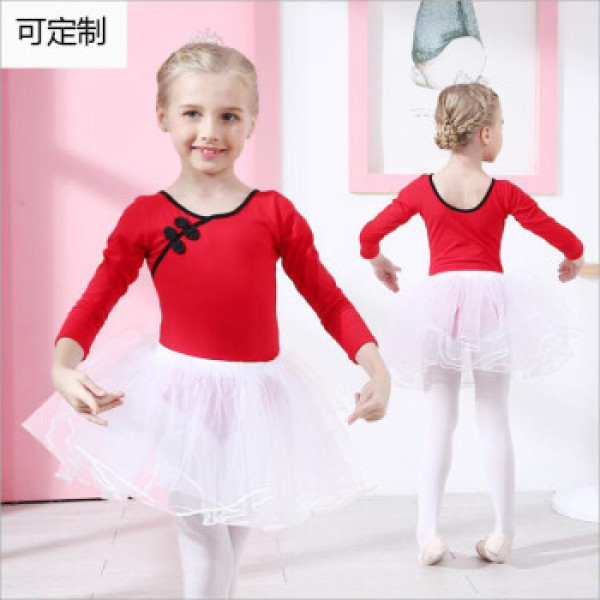 茜宸 XICHEN 可定制幼儿童舞蹈服装女童练功服芭蕾舞服纱裙中国红复古盘扣拼色舞蹈服白纱裙 120码