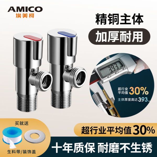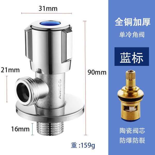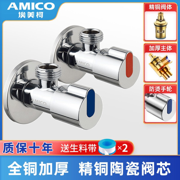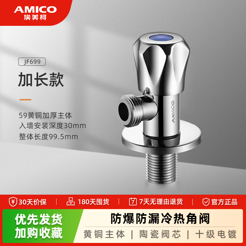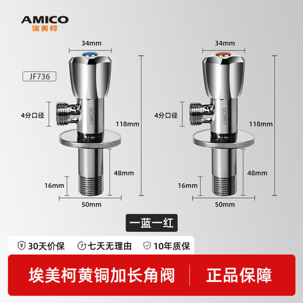 埃美柯 (AMICO)四分全铜角阀 热水器加长三角阀冷热八字阀马桶进水阀 【699加长加厚】蓝标