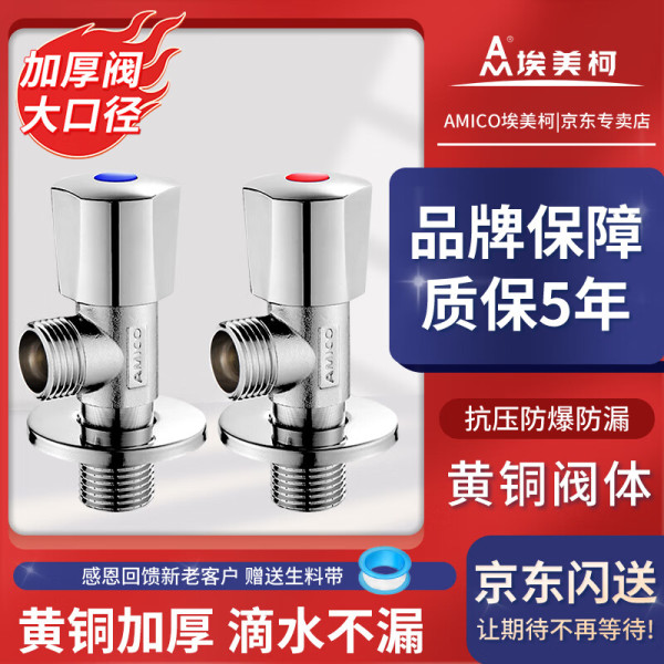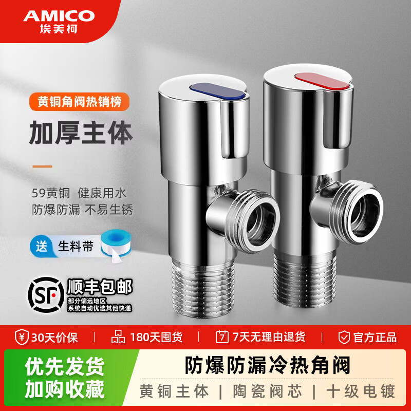 埃美柯 (AMICO)四分全铜角阀 热水器加长三角阀冷热八字阀马桶进水阀 【787热销款】一红一蓝
