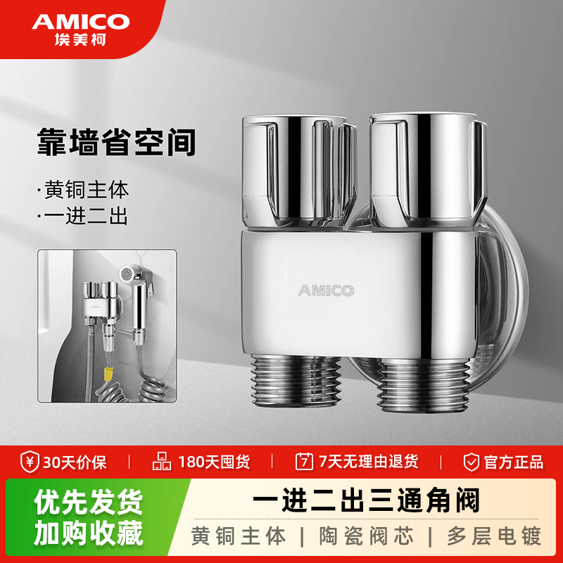 埃美柯 (AMICO)四分全铜角阀 热水器加长三角阀冷热八字阀马桶进水阀 【775一进二】双控双出角阀(不带喷枪)
