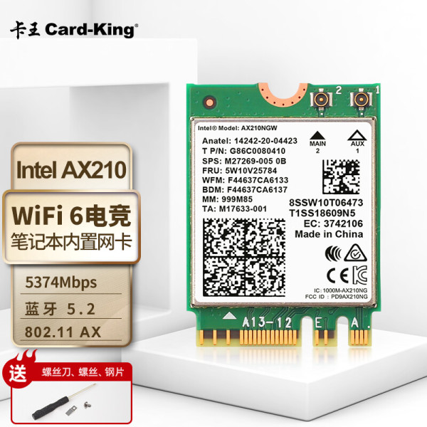 Card-King 卡王 KW-AX210 WIFI6模块千兆三频5374M笔记本内置无线网卡M2接口WIFI接收器+蓝牙5.2