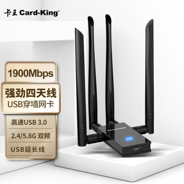 Card-King 卡王 KW-AC8010 1900M 11AC双频高速外置高增益天线USB无线网卡 台式机笔记本wifi接收器