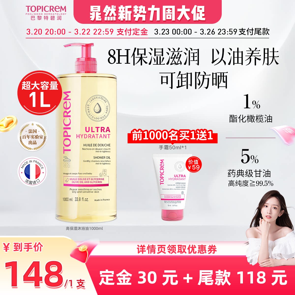 【晁然推荐】Topicrem特碧润高保湿沐浴油舒缓干痒大容量1000ml