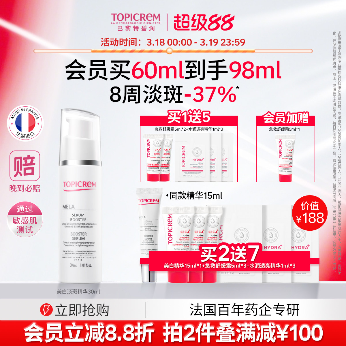 Topicrem巴黎特碧润美白祛斑白月光精华液烟酰胺提亮敏肌抗氧修护