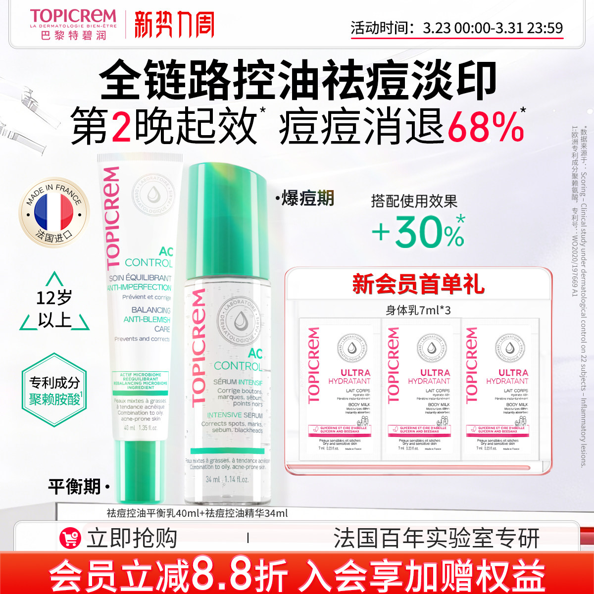 TOPICREM特碧润快速祛痘控油精华青春期抑痘淡印去闭口粉刺