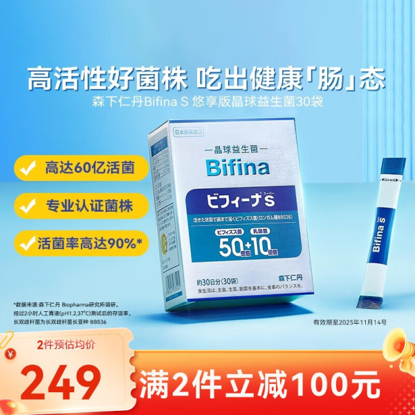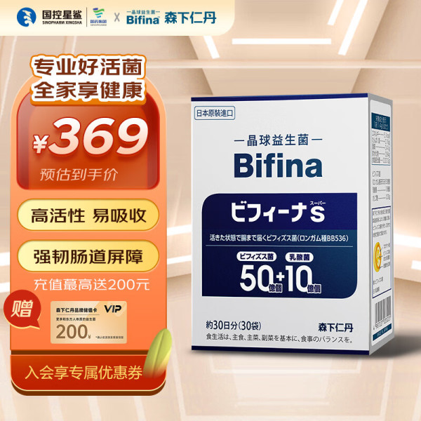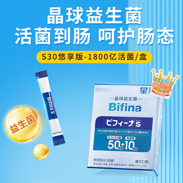 森下仁丹晶球益生菌进口肠道益生菌益生元长双歧杆菌乳酸菌S悠享版30袋/盒