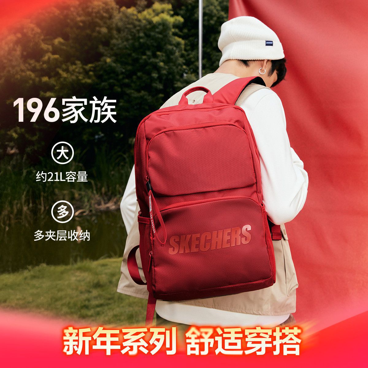 斯凯奇 【经典爆款】大容量运动背包男女款大学生双肩包女初中高中生书包
