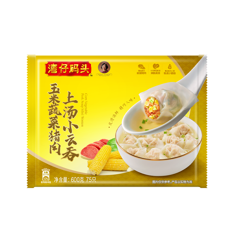 湾仔码头上汤小云吞玉米蔬菜猪肉600g75只馄饨早餐夜宵速食混沌