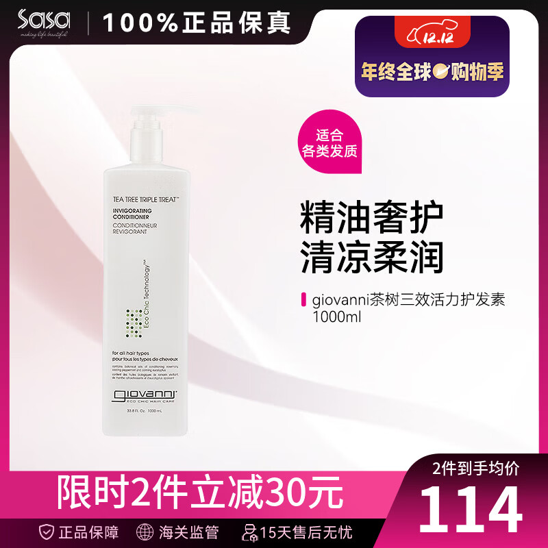 乔梵尼乔凡尼洗发水露无硅油清爽头皮蓬松男女士 大瓶装 茶树三效活力护发素 1000ml*1瓶