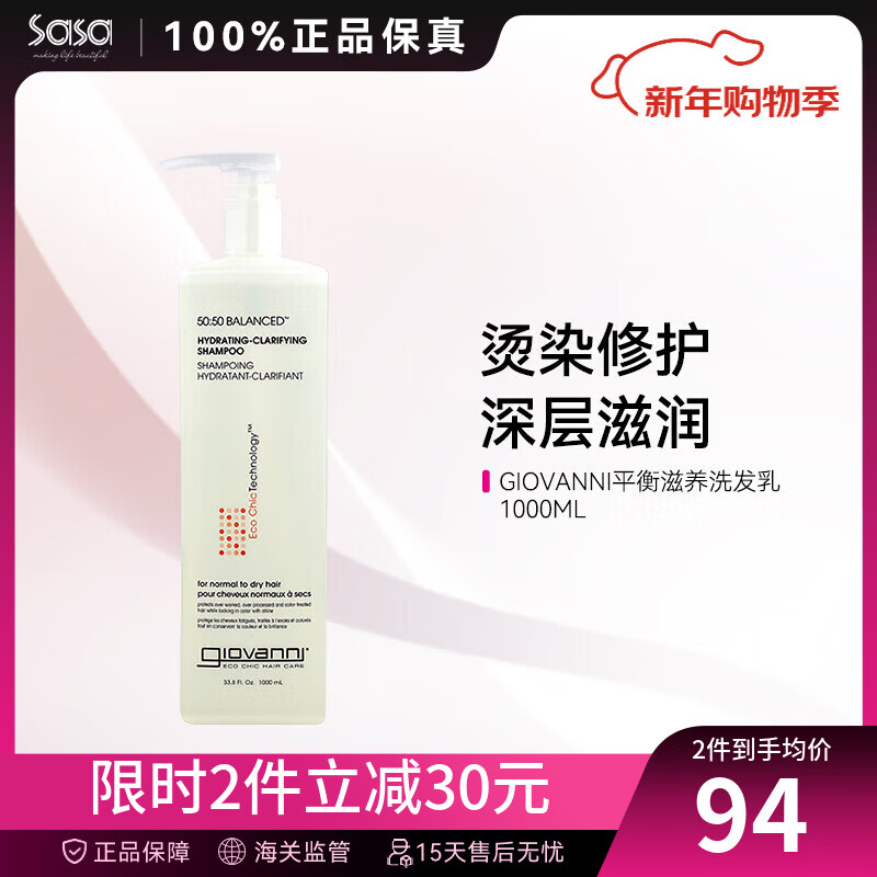 乔梵尼乔凡尼洗发水露无硅油清爽头皮蓬松男女士 大瓶装 平衡滋养洗发水保税 1000ml*1瓶
