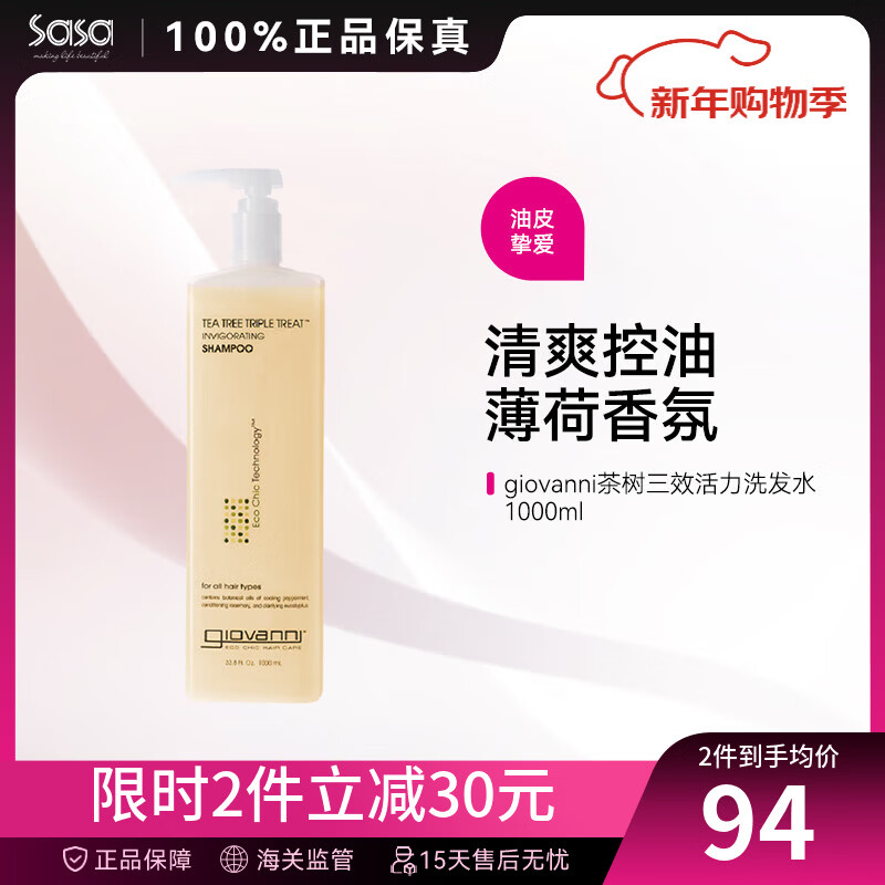 乔梵尼乔凡尼洗发水露无硅油清爽头皮蓬松男女士 大瓶装 茶树三效活力保税 1000ml*1瓶