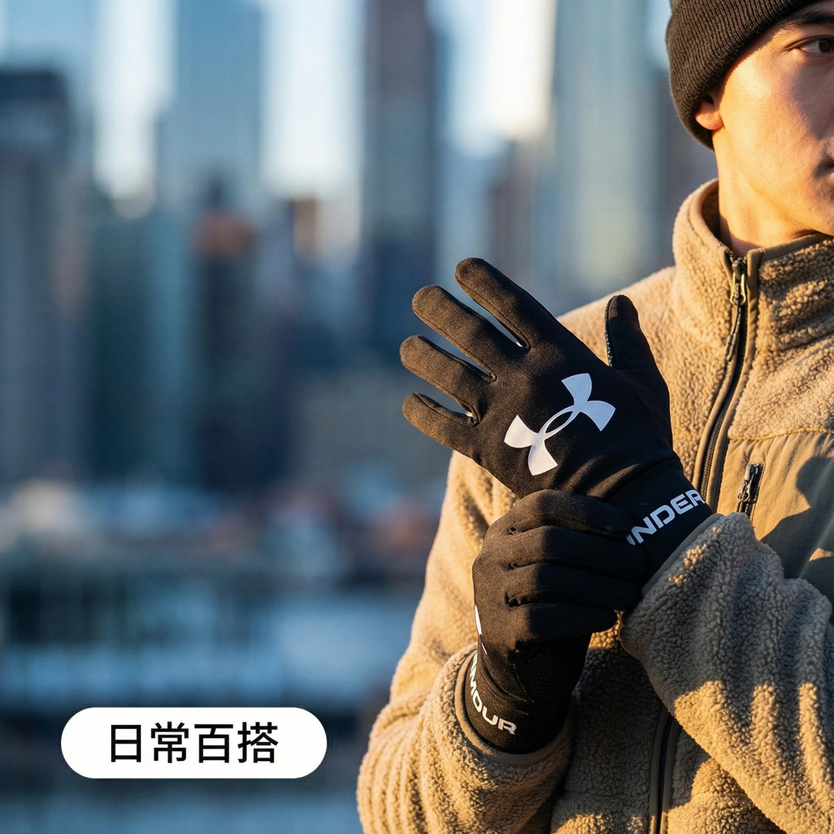 安德玛 保暖手套冬季手套防寒触屏飞盘手套跑步骑行足球训练运动