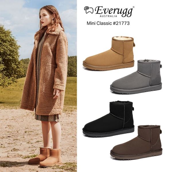 澳洲Everugg 一粒扣短筒雪地靴皮毛一体加绒冬保暖防滑时尚短靴女(255元/件)