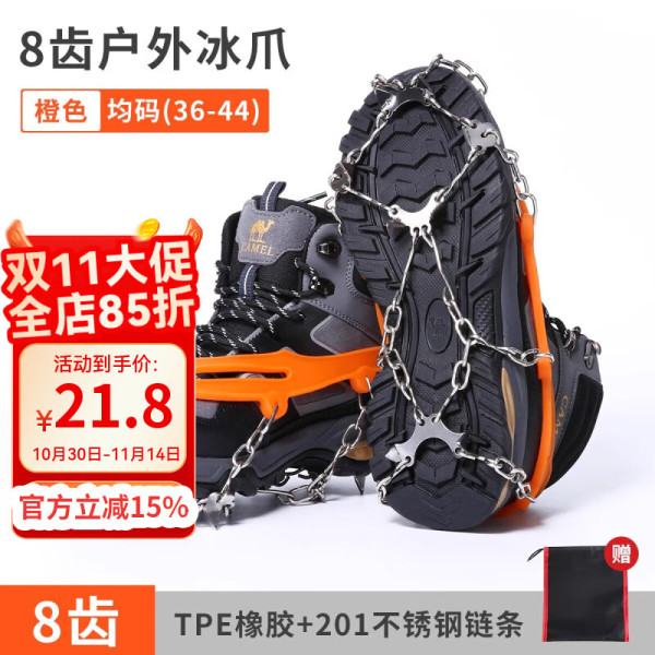 Golmud 冰爪防滑鞋套 户外雪地 钢冰爪登山鞋 钉滑雪橙色均码8齿