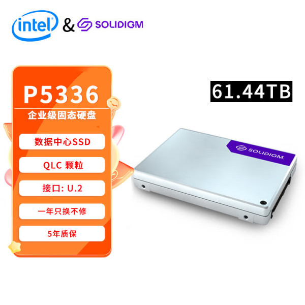 SOLIDIGM &英特尔(Intel)企业级固态硬盘 PCIe4.0x4 U.2接口 NVMe协议 D5-P5336 61.44TB