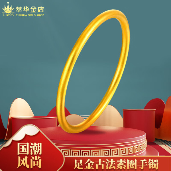 萃华金店足金999古法传承素圈黄金手镯女士国庆节礼物送女友老婆生日 【古法素圈】金重约10.2g 60圈口