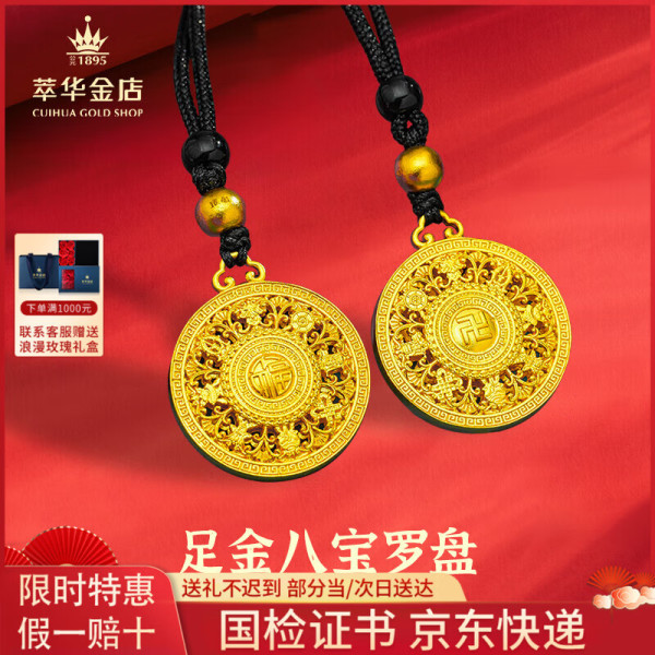 萃华金店黄金吊坠足金9999八宝罗盘中国风挂坠国庆节 金重约10.4g(配绳子)