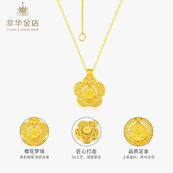 萃华金店足金999转动花朵套链黄金项链520礼物七夕告白送女友老婆节日礼物 约6g(克重少退多补)