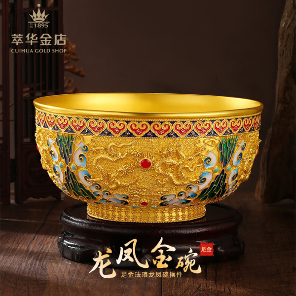 萃华金店 足金999珐琅龙凤碗摆件收藏理财投资理财高档商务送礼物 珐琅龙凤碗约421g