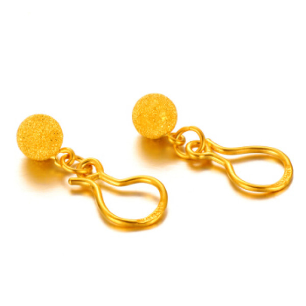 萃华金店 金店 足金黄金耳环女款 喷砂转运珠金耳坠闪耀星星耳饰