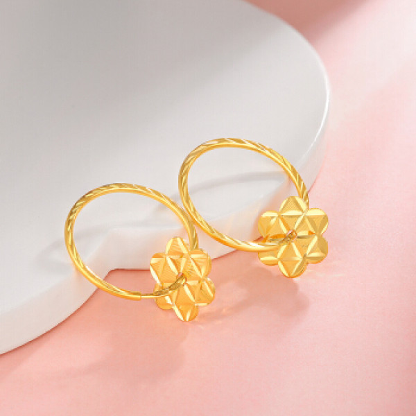 萃华金店 足金黄金耳环闪耀车花耳坠 PAAE0101