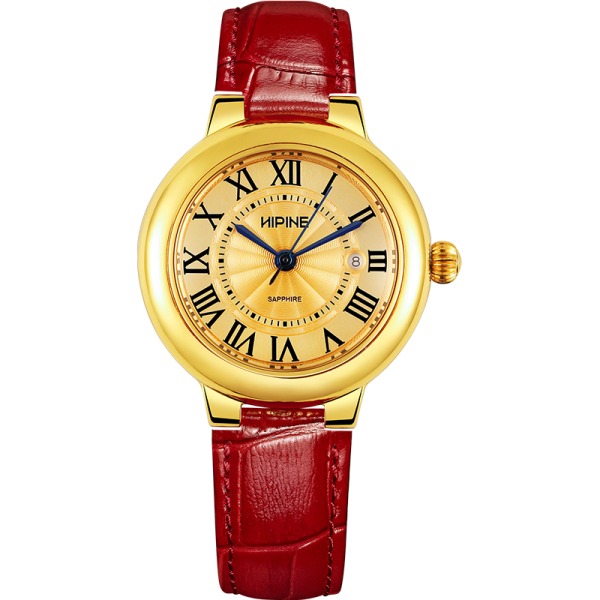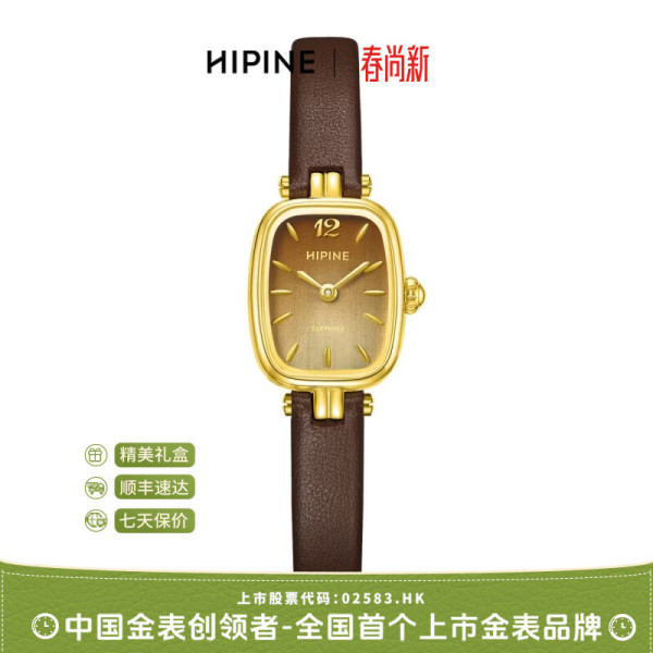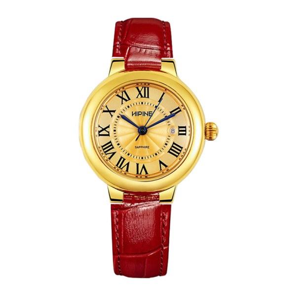 西普尼 金表(HIPINE)金表女纯金999足金黄金手表复古腕表时尚骐骥红石英女 金重3.5g+