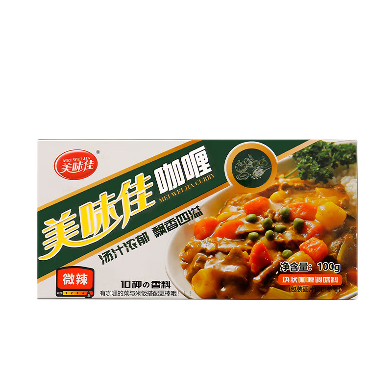 美味佳微辣咖喱100g*3家用拌饭拌面黄咖喱 复合调味料 块状咖喱