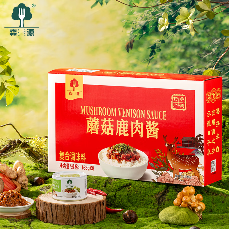 森源蘑菇鹿肉酱香菇牛肉酱调味拌面酱河北承德平泉特产年货礼盒礼品 鹿肉蘑菇酱礼盒168g*8瓶