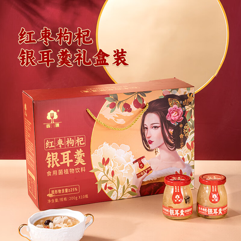 森源即食银耳羹礼盒滋补营养红枣枸杞0色素0防腐剂200g*10瓶装 一整根参银耳羹200g*6瓶