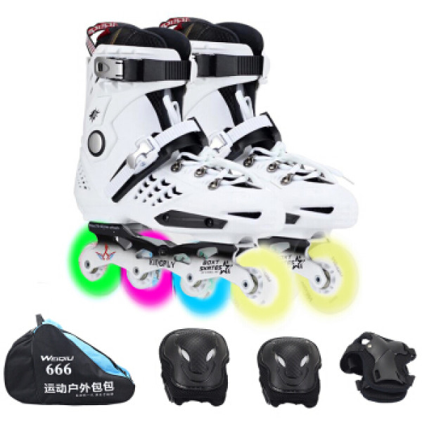 纬球 溜冰鞋成人专业轮滑鞋全闪滑冰鞋WQ-T1704-W-43白色43码