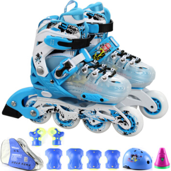 纬球溜冰鞋儿童全套装男女轮滑鞋可调节旱冰鞋滑冰鞋 T1703蓝色S码