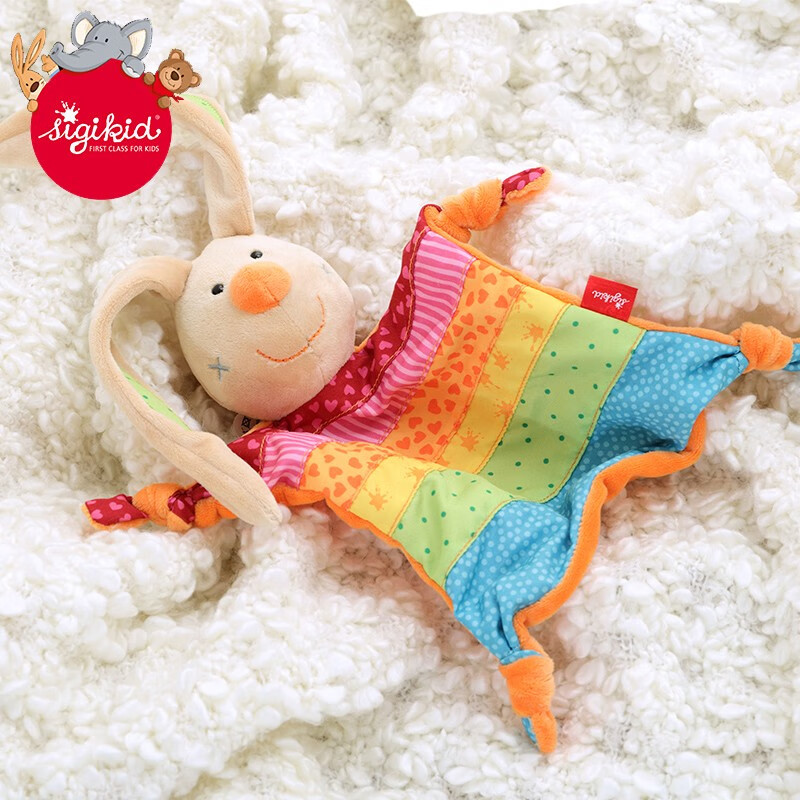 sigikid德国宝宝安抚巾婴幼儿可啃咬哄睡眠手偶小兔子毛绒玩具娃娃阿贝贝 Rainbow Rabbit 彩虹兔安抚巾