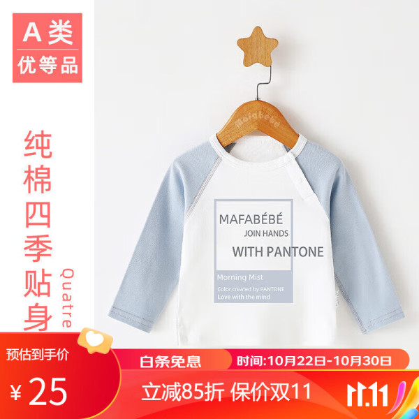 玛珐贝贝(Mafabébé)儿童T恤婴童宝宝纯棉内衣外衣上衣打底衫春秋卫衣服 携手潘通系列(蓝) 80cm