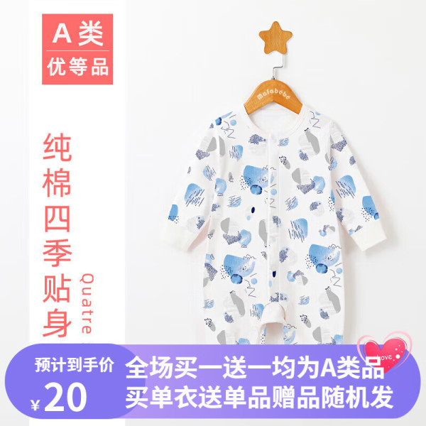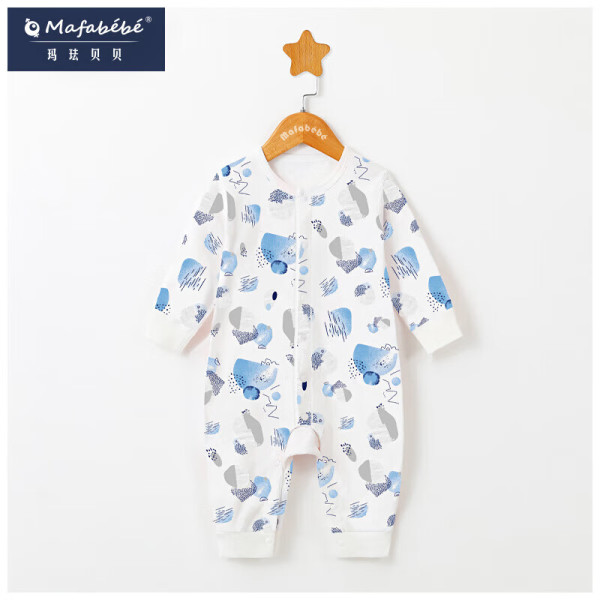 玛珐贝贝(Mafabébé)专享纯棉婴儿宝宝爬行服哈衣四季连体衣爬服 U型裆爬服蒙特里安蓝色 66cm