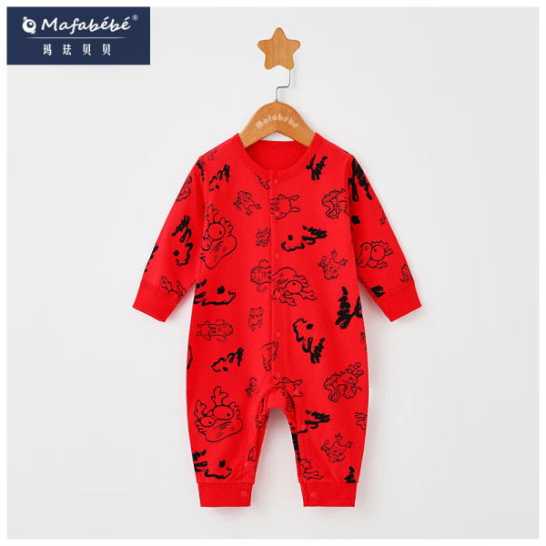 Mafabébé 玛珐贝贝 婴儿连体哈衣 红底书法龙 52cm