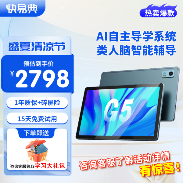 快易典G5 学习机平板电脑10.36英寸类纸护眼屏学习机平板小学到高中8G+256G全科同步平板 海青色 G5年度学习机 8+256G