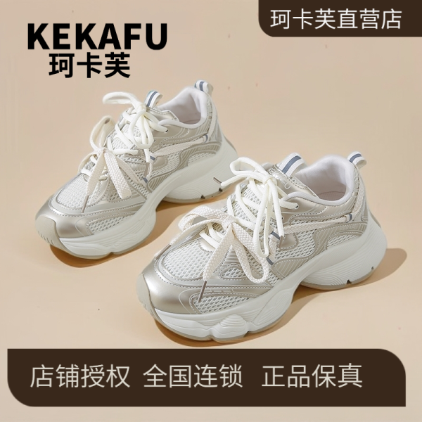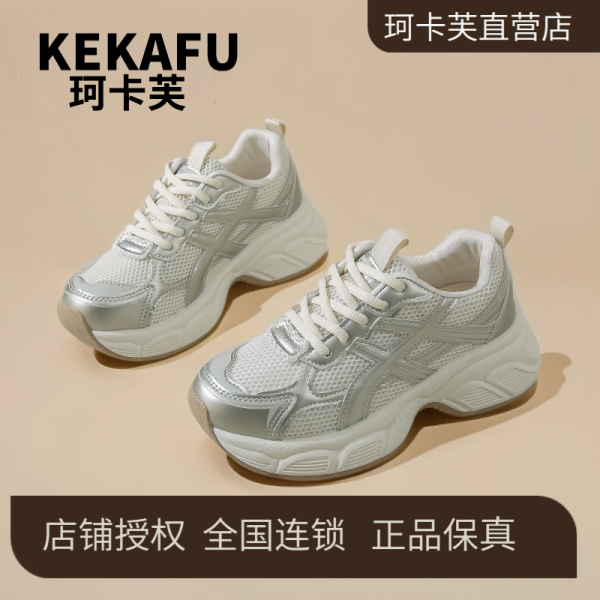 珂卡芙 老爹鞋女增高2026新款春季百搭白色厚底小个子运动休闲鞋子