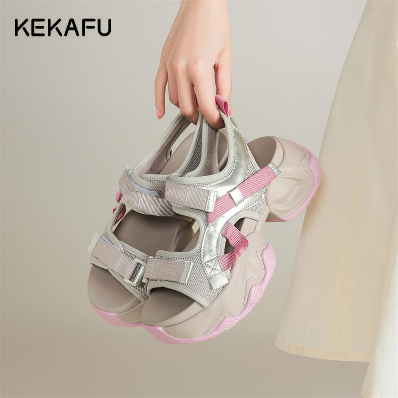 珂卡芙运动凉鞋女学生2025新款沙滩鞋罗马凉拖厚底舒适女生少女 紫色跟高6.5cm 40