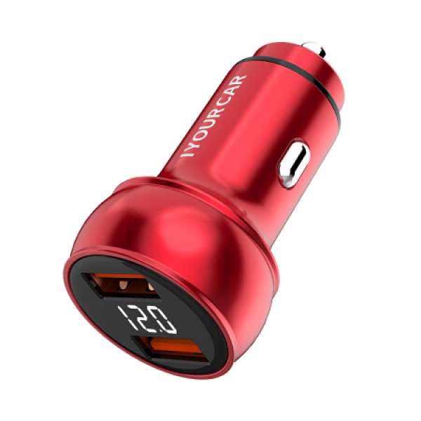砖叔(ZHUANSHU)车载充电器快充多功能汽车车充点烟器转换插头电器一拖二闪充双USB数显款 烈焰红