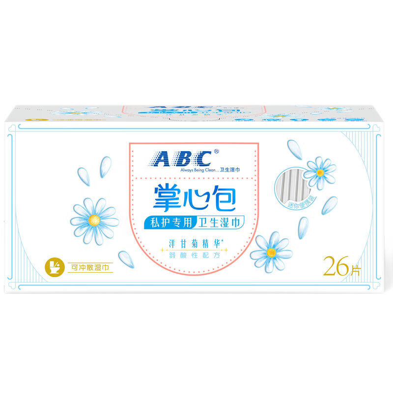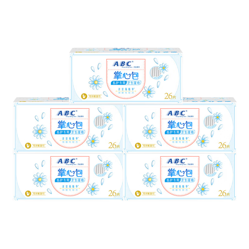 ABC卫生湿巾私处清洁湿巾男女私处洁阴湿巾房事湿巾单片独立包装 掌心包5盒130片