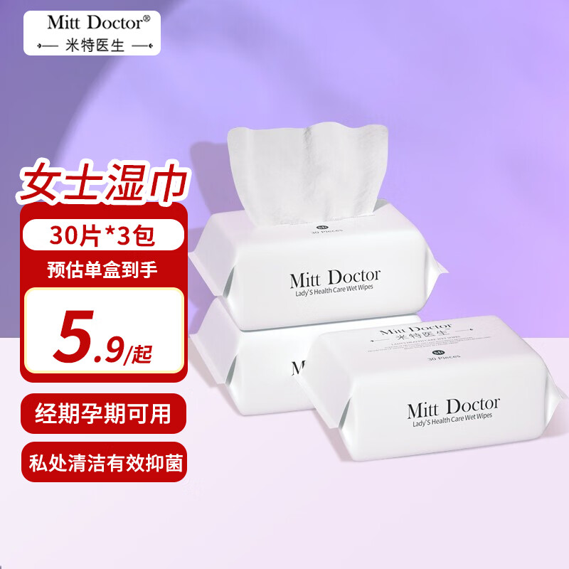 米特医生 洁阴湿巾 私处清洁亲肤湿纸巾湿巾 女性房事卫生护理 姨妈期可用 30片*3包